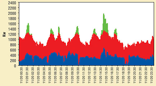 Utilities need to be able to supply the highest instantaneous demand from their customers. This peak generating capacity is expensive to build and maintain, not always environmentally friendly and underutilized much of the time. As a result, utilities calculate a customer’s bill based not only on consumption but also on peak demand. This may appear as a line item or be hidden within a “delivery” charge. In most jurisdictions, the peak demand is calculated as the highest average demand in any 15-minute time span during the billing period. Since a significant portion of a plant’s electrical energy costs is determined by its peak demand, efforts to lower the peak can result in worthwhile and ongoing savings.