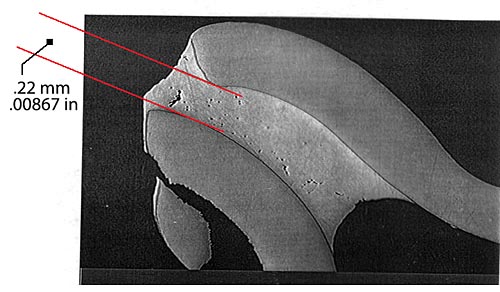 3. Voids resulting from poor gap clearances usually show measurable differences in the distance between the faying surfaces as compared to that of properly brazed joints in the same assembly.