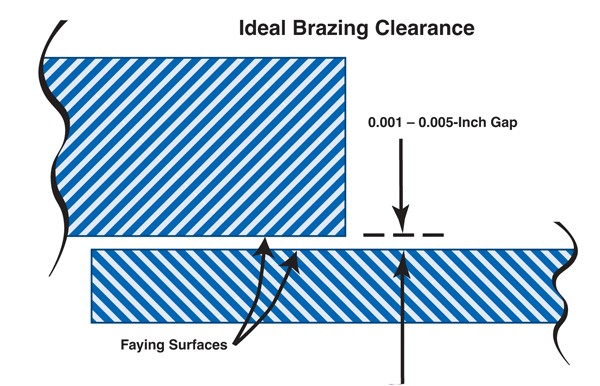 Some people erroneously believe that brazing filler metals (BFMs) will bridge gaps of almost any size. Actually, good braze practice calls for 0.001 to 0.005 inch of clearance in the joint at brazing temperature.